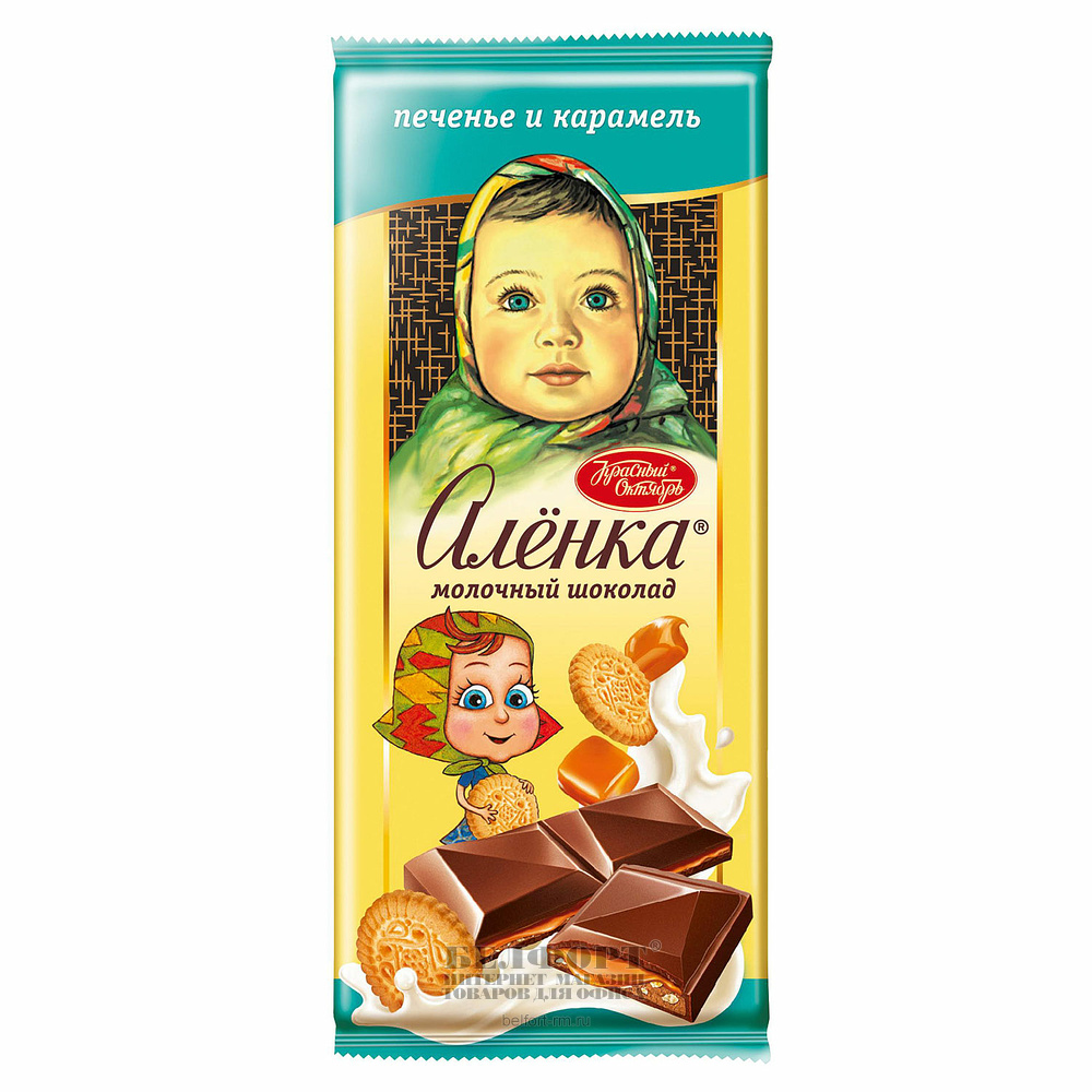 Шоколад Красный Октябрь, "Аленка", с карамельной и молочной начинками и печеньем, 87г