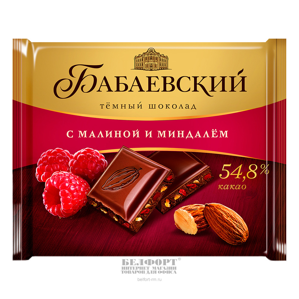 Шоколад Бабаевский, темный, с малиной и миндалем, 54,8% какао, 70г