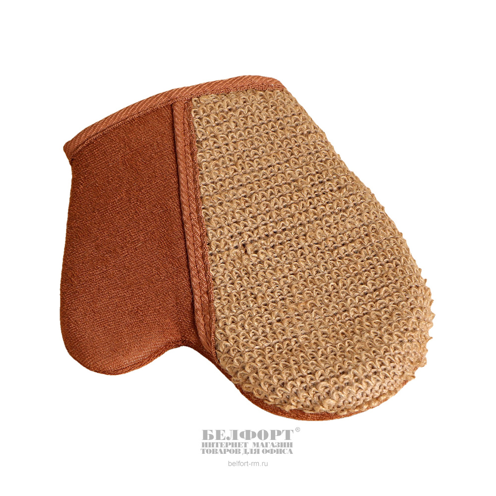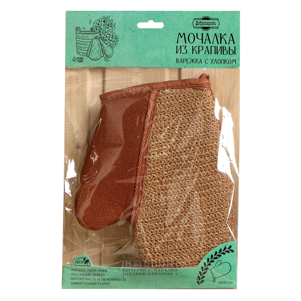 Губка банная Добропаровъ, "Варежка", 21см*18см, крапива (рами), хлопок, коричневая