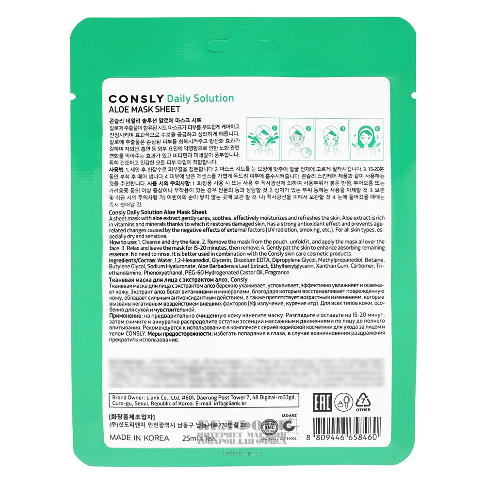Маска для лица Consly, тканевая, с экстрактом алоэ, 25г