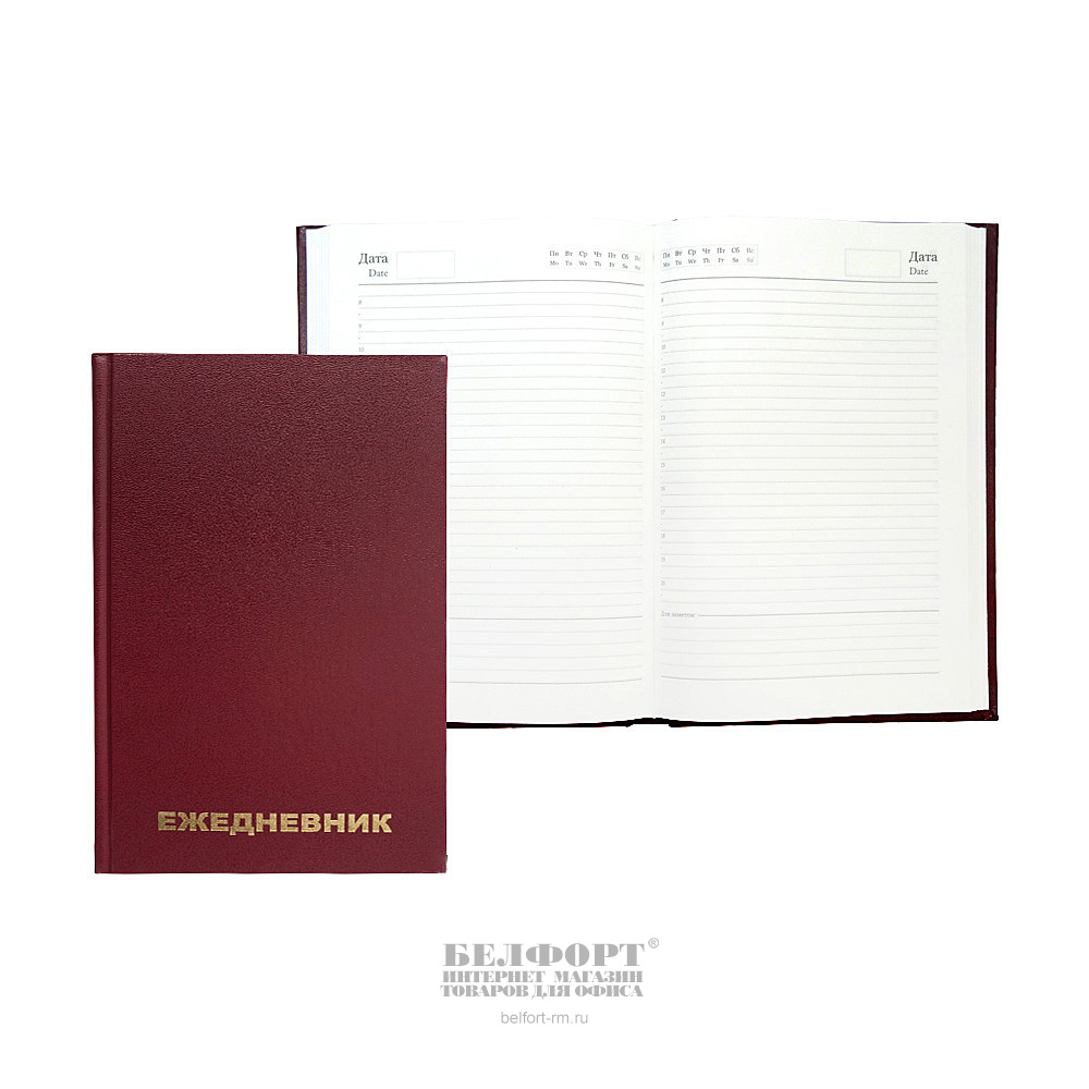 Ежедневник недат. А5, бумвинил, Brauberg, 160л, 215мм*145мм, в твердом переплете, бордовый, белый блок