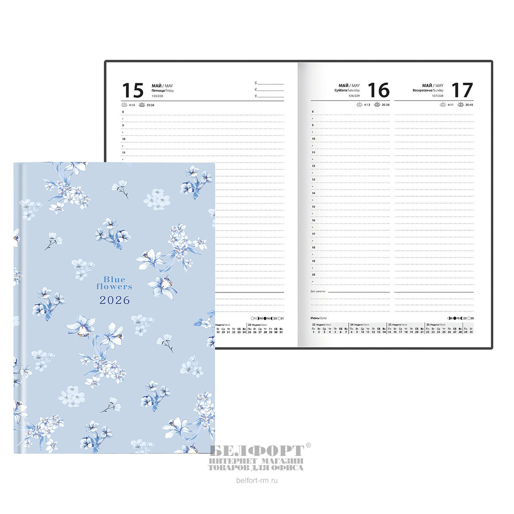 Добавить к сравнению259469Нужно больше? Свяжитесь с менеджером отдела продажЕжедневник 2026г. А5, бумвинил, BG, 168л, 206мм*135мм, в твердом переплете, синий, белый блок, 60г⁄м²