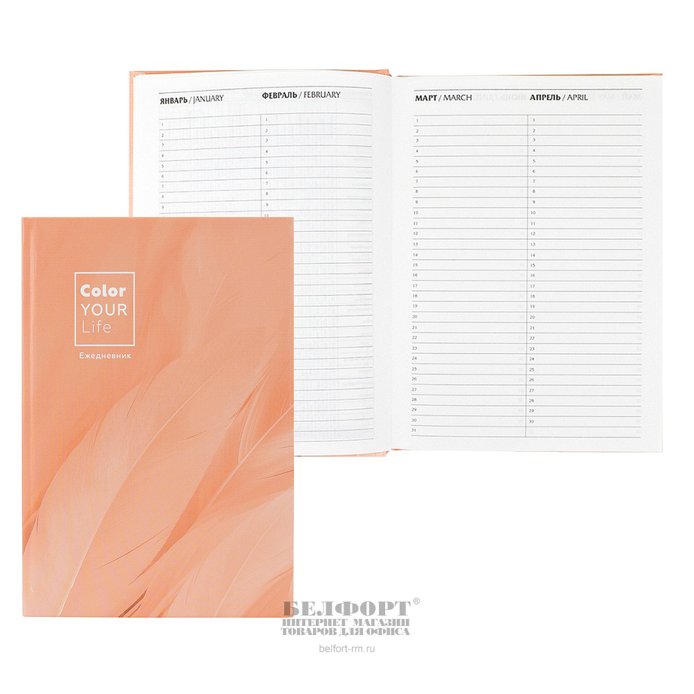 Ежедневник недат. А5, картон мелованный, Prof-Press, "Peach Fuzz", 136л, тиснение "Лен", в твердом переплете, цветной, белый блок