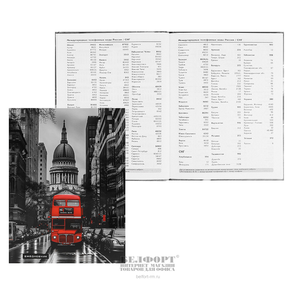 Ежедневник недат. А5, картон ламинированный, Collezione, "Улицы Лондона", 80л, глянцевый, в твердом переплете, цветной, белый блок