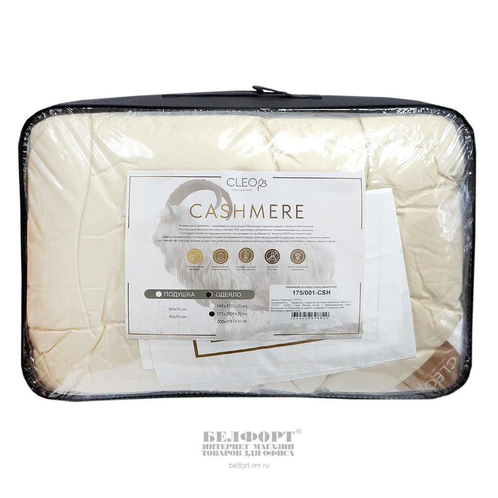 Одеяло от торгового бренда Cleo " Cashmere " – здоровый сон и роскошь! Коллекция " Cashmere " – теплое одеяло с наполнителем из Монгольской кашмирской козы (75% кашемир, 25% силиканизированное волокно) чехол из 100% хлопкового тика. По периметру изделия вшит кант, который придает изделию не только эстетический внешний вид. но и помогает держать форму. Благодаря новейшим технологиям изделие легкое, воздушное, теплое. Гигроскопичность шерсти– еще одна уникальная особенность, создавая сухое тепло, шерсть помогает при лечении таких заболеваний. как артрит и ревматизм.