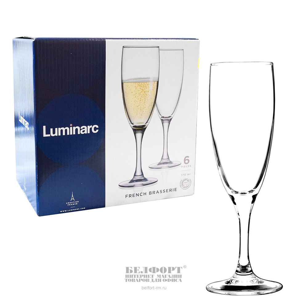 Набор фужеров 6шт, для шампанского, 170мл, стекло, Luminarc, "Французский ресторанчик", прозрачный