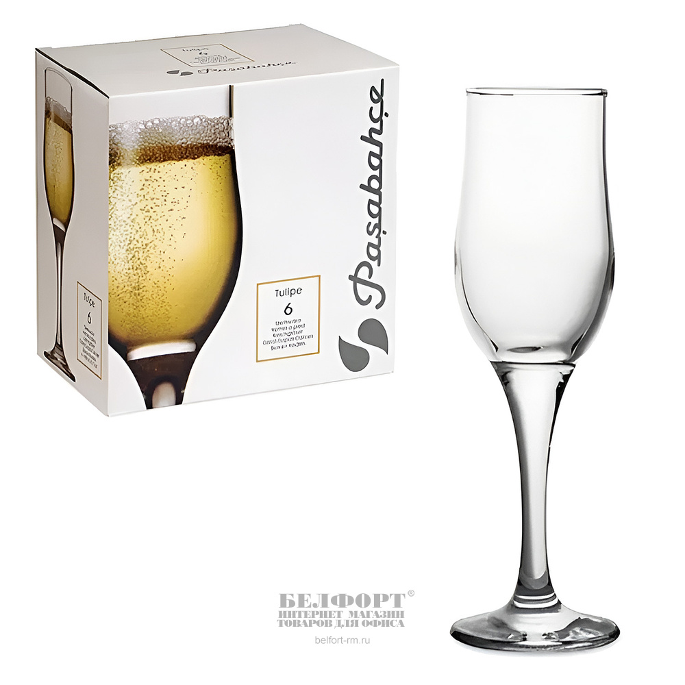 Набор фужеров 6шт, для шампанского, 190мл, стекло, Pasabahce, "Тулип", прозрачный