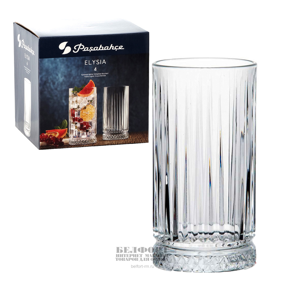 Набор стаканов 4шт, для напитков, 450мл, стекло, высокий, Pasabahce, "Элизия", прозрачный