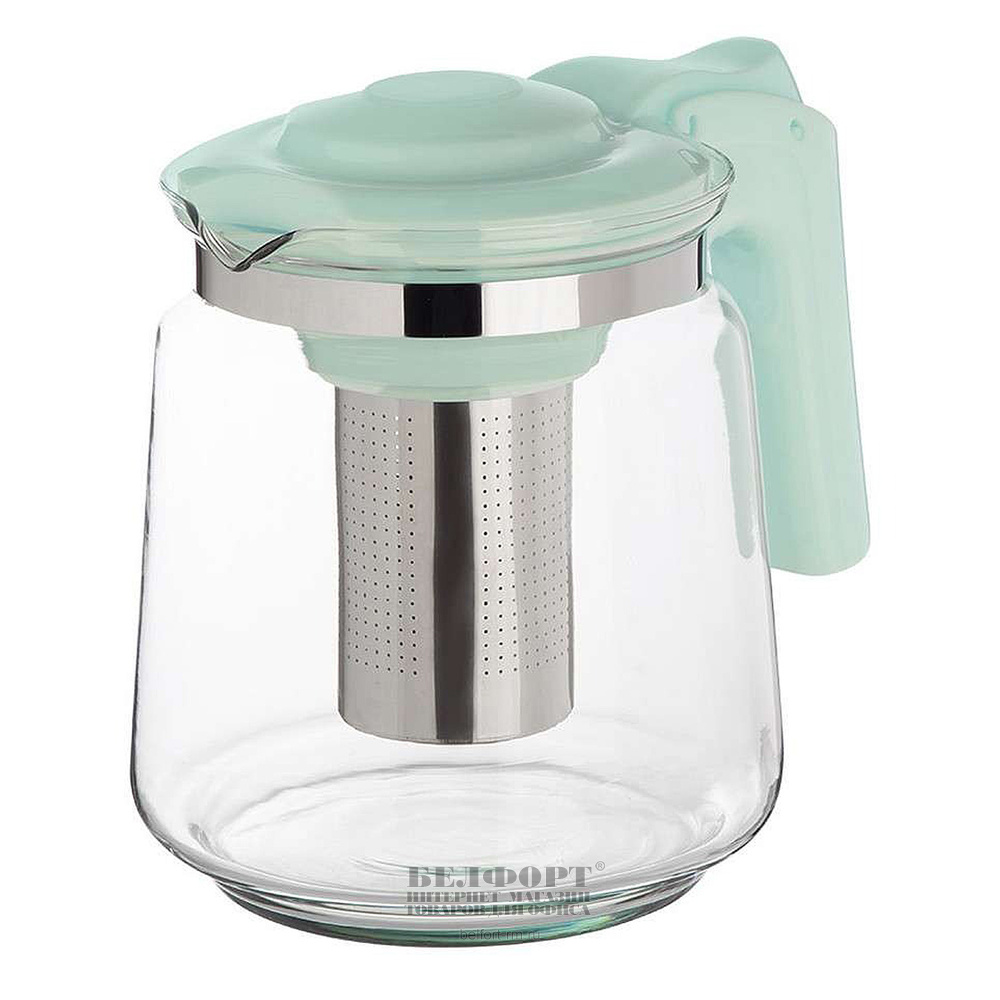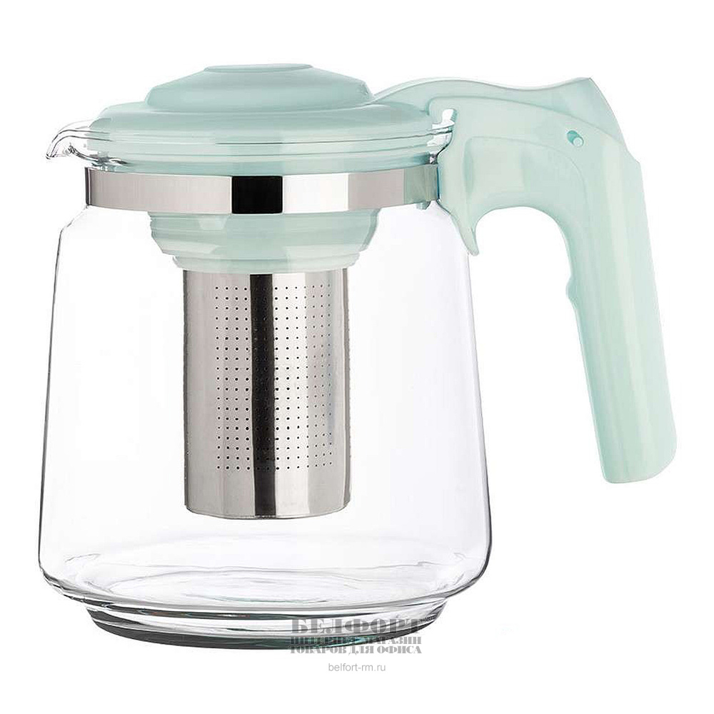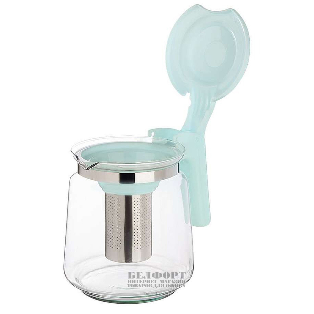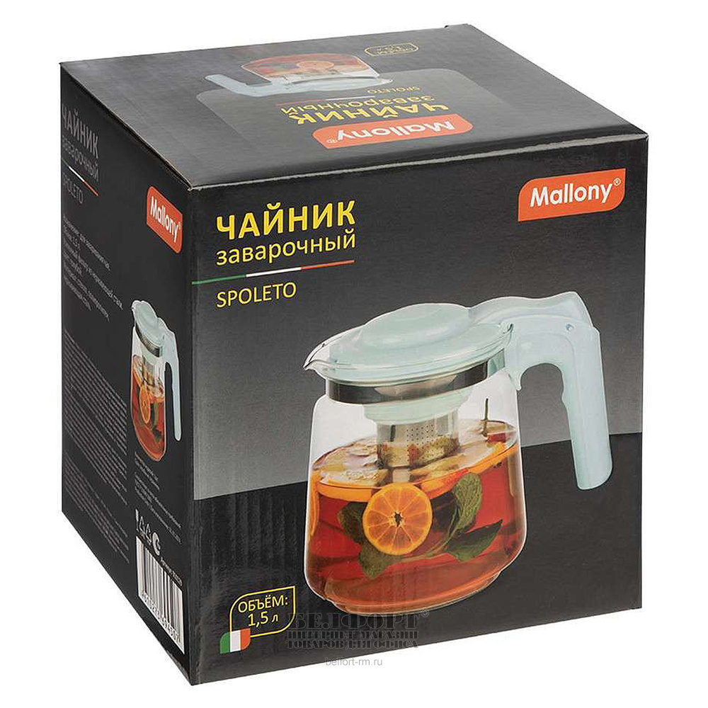 Чайник заварочный 1,5л, стекло+полипропилен, Mallony, "Spoleto", голубой
