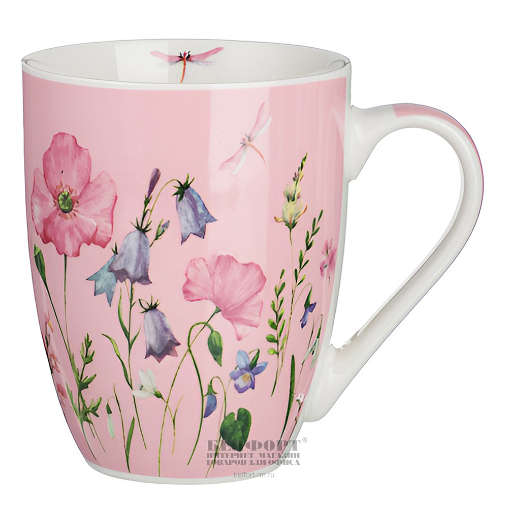 Кружка 350мл, фарфор, "Соцветие", розовая