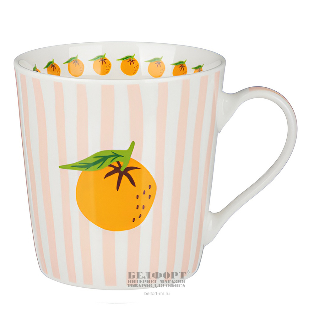 Кружка 330мл, фарфор, Millimi, "Фрукты в полоску", "Апельсин"