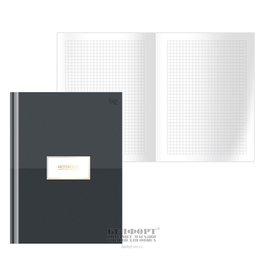 Бизнес-блокнот А4, 160л, BG, "Моноколор. Классика", картон ламинированный, клетка, в твердом переплете, черный, белый блок, глянц. лам.