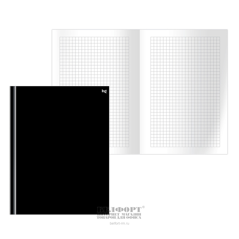 Бизнес-блокнот А4, 160л, BG, "Моноколор. Классика", картон ламинированный, клетка, в твердом переплете, черный, белый блок, глянц. лам.