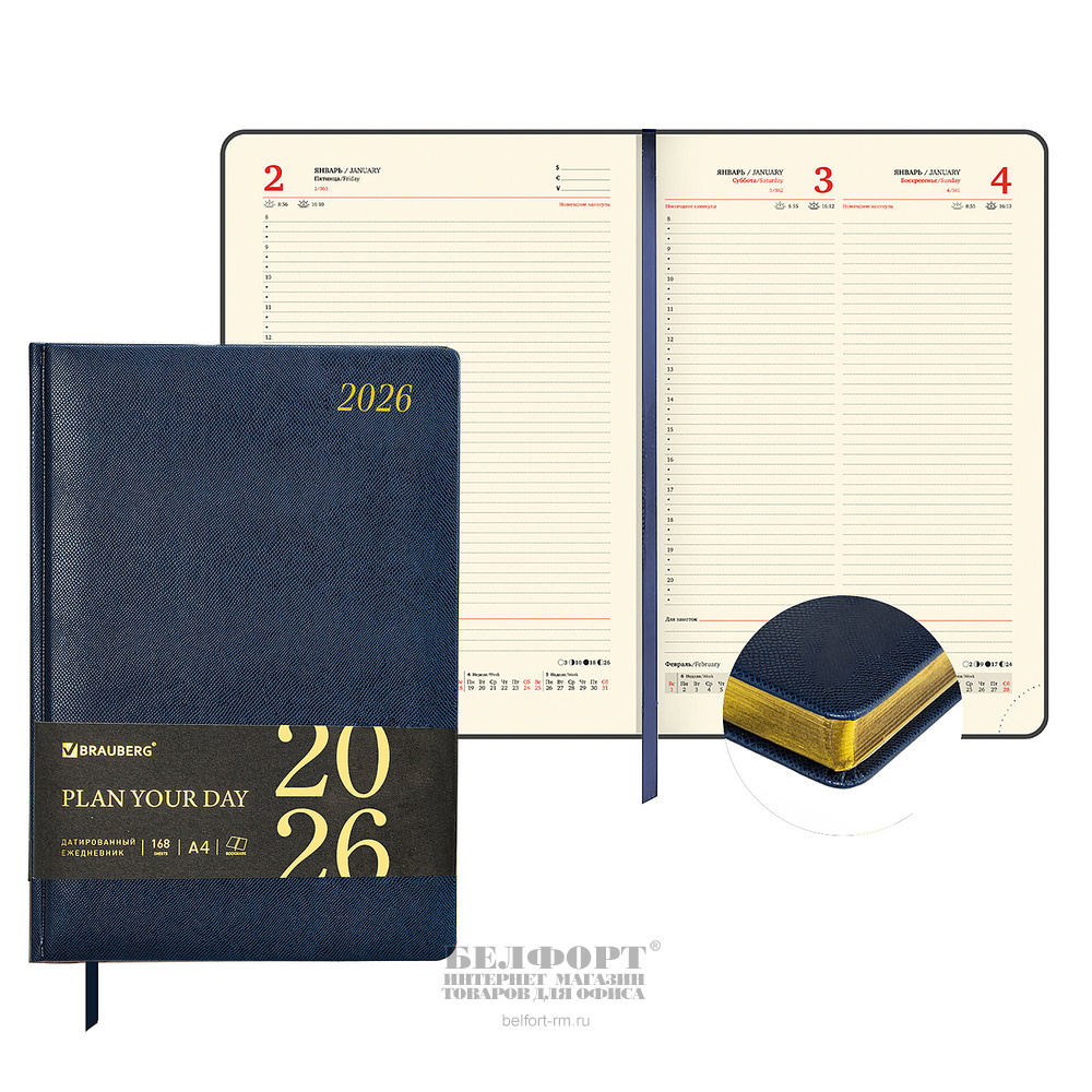 Нужно больше? Свяжитесь с менеджером отдела продажЕжедневник 2026г. А4, кожзам, Brauberg, "Imperial", 168л, в твердом переплете, синий, кремовый блок, ляссе, скругленные уголки 880 руб. Цена за штуку в упаковке 18 штукУсловия доставки -