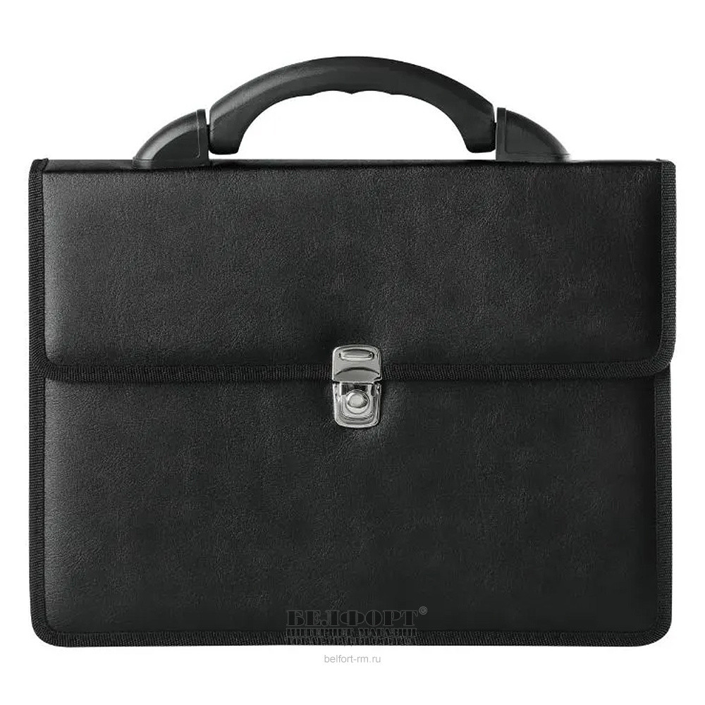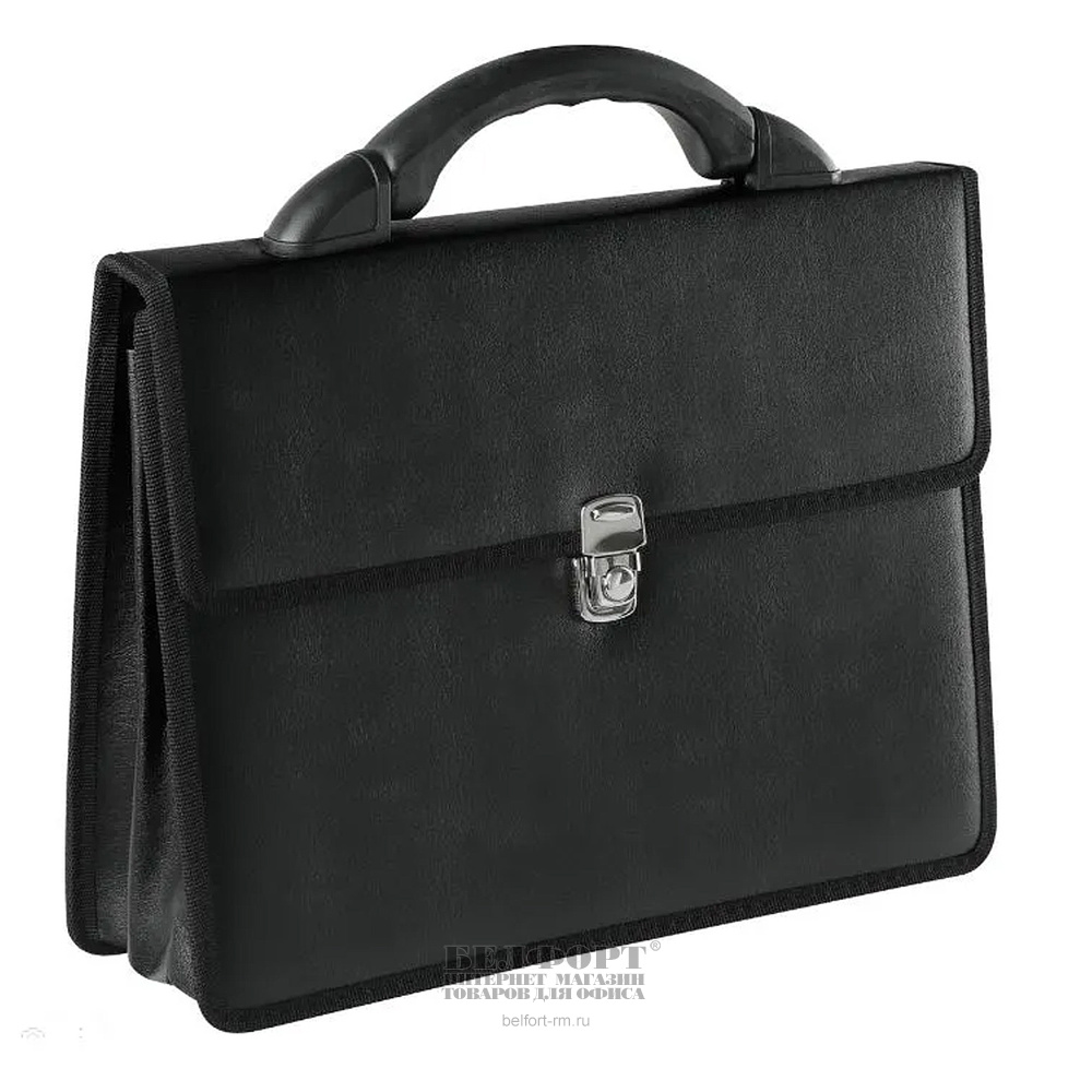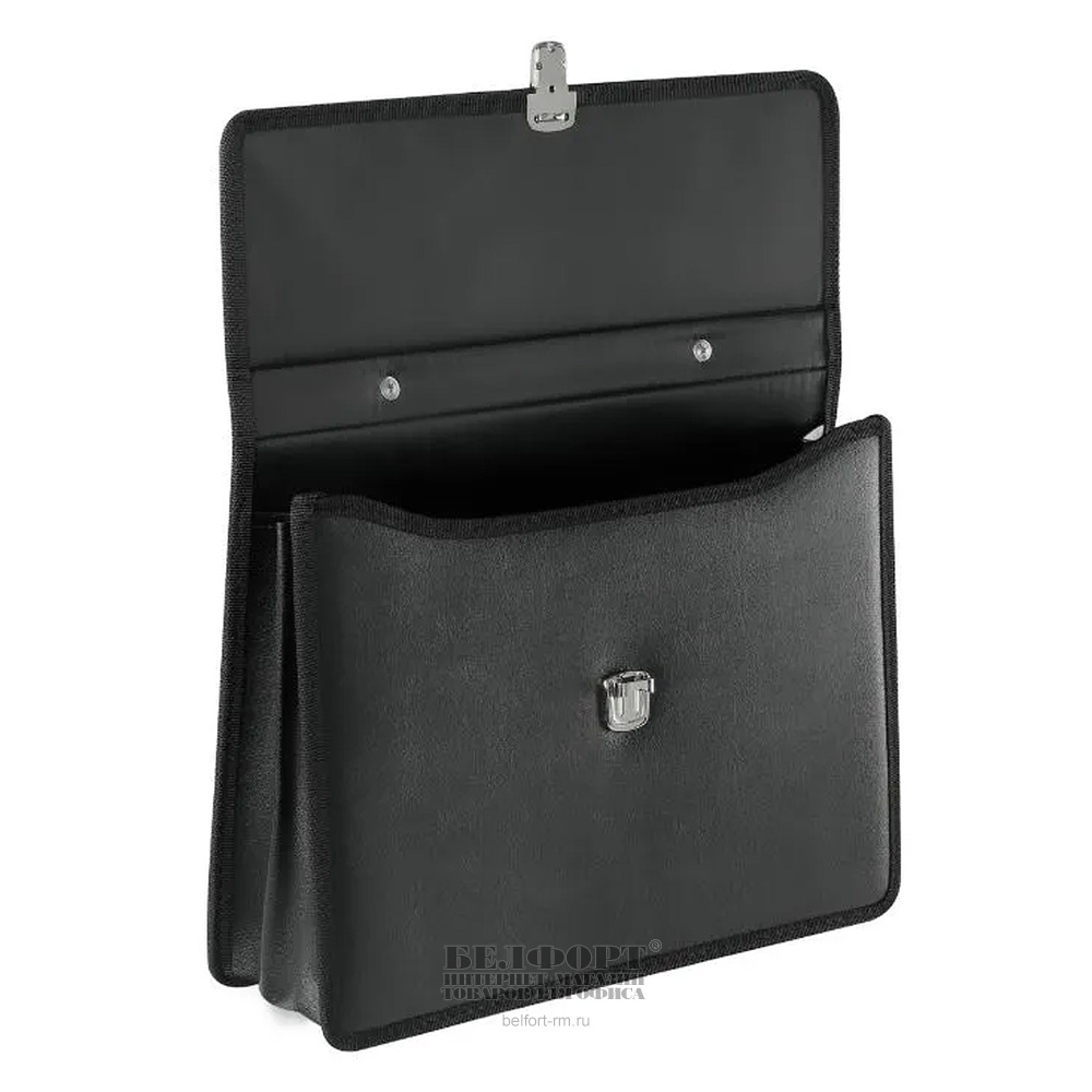 Портфель OfficeSpace, "Сиена (Siena)", на метал. замке, 2 отд., 350мм*260мм*90мм, кожзам, черный
