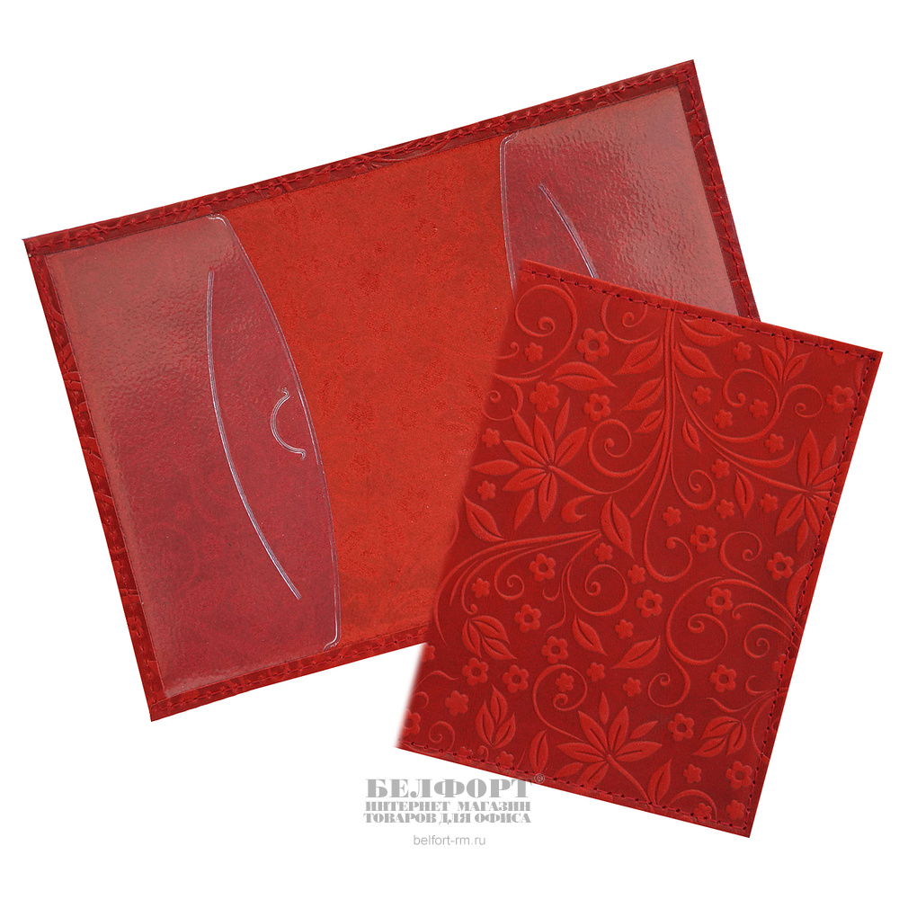 Обложка для паспорта 13,5см*9,5см, кожа натуральная, тиснение "Флаверс", лакированная, красная