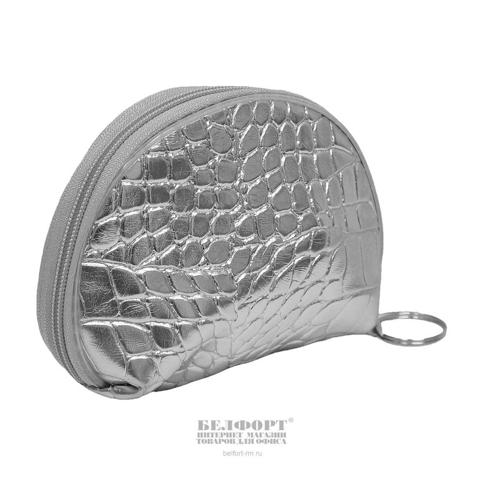 Кошелек-монетница на молнии, 9,5см*2см*7см, кожзам, серебристый