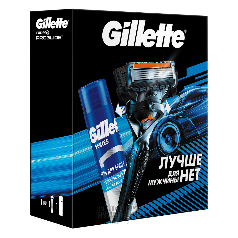 Косметический набор мужской, Gillette, "Mach3", "ProGlide Flexball", станок 5 лезвий+гель для бритья "Масло какао" 200 мл