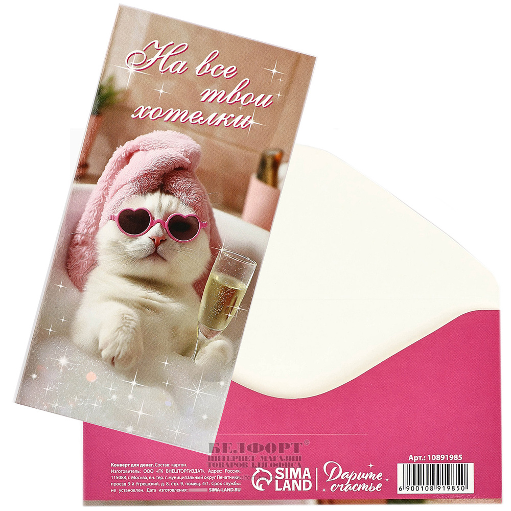 Конверт для денег "Розовый бант", 16,5см*8см