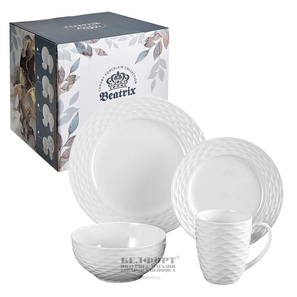 Сервиз столовый 16 предметов, фарфор, Beatrix, "Blanco", белый
