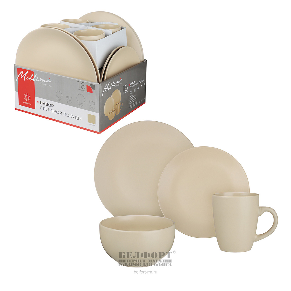 Сервиз столовый 16 предметов, керамика, Millimi, кремовый