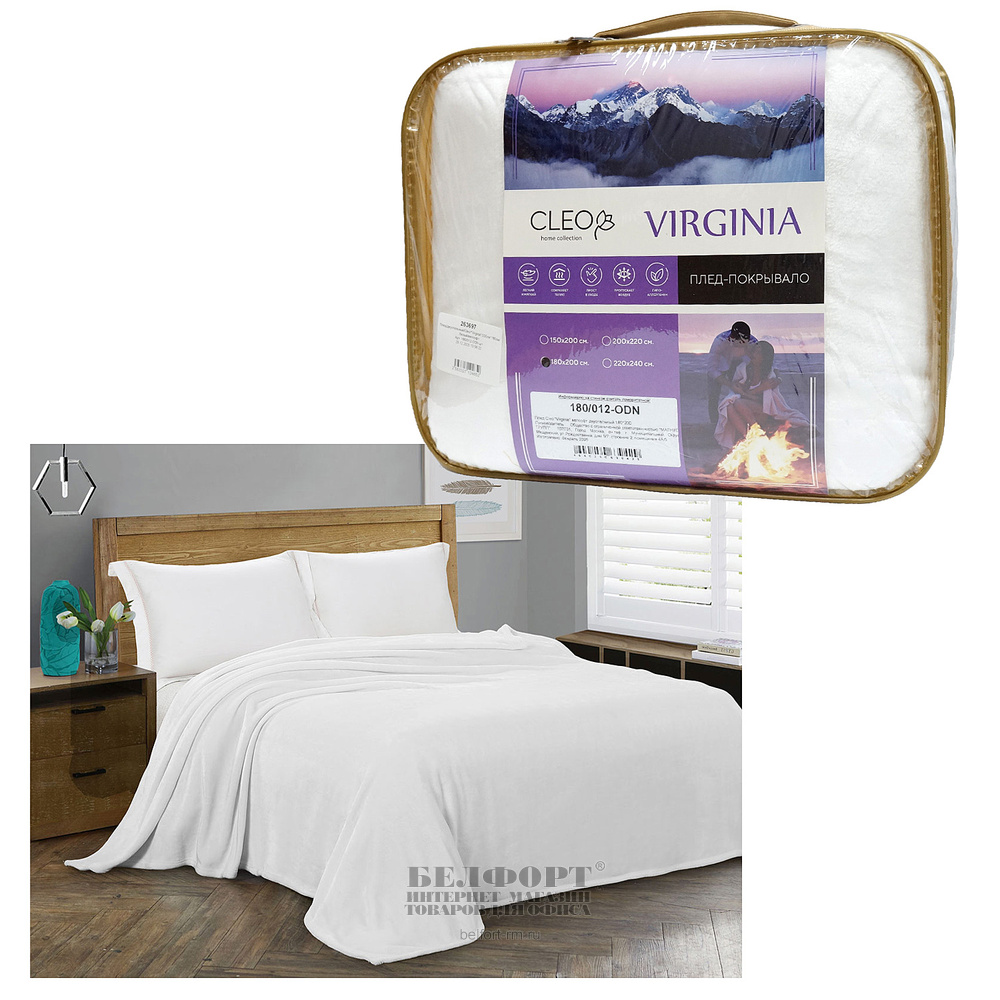 Плед двуспальный, Cleo, "Virginia", 200см*180см, белый, велсофт