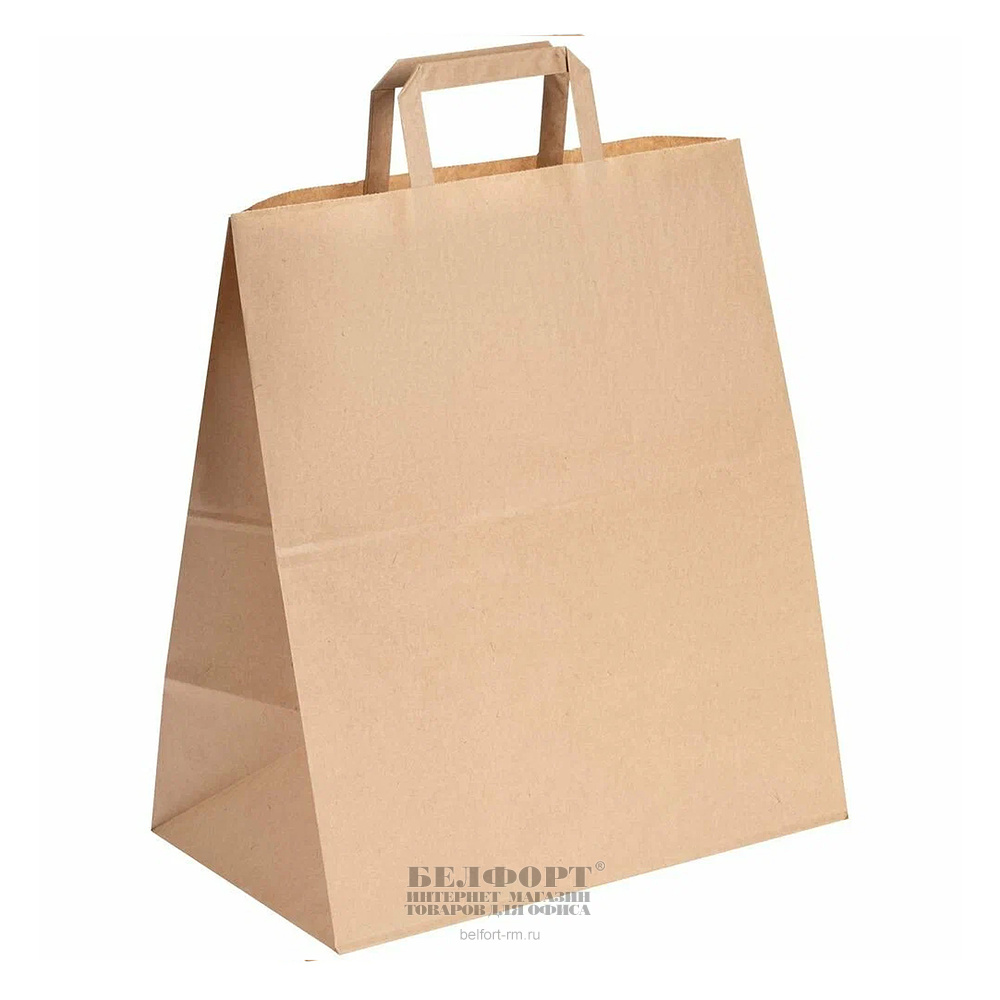Пакет крафт бумага, 32см*20см*37см, вертикальный, плоские ручки, 70г⁄м²