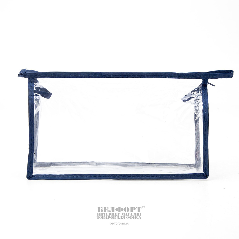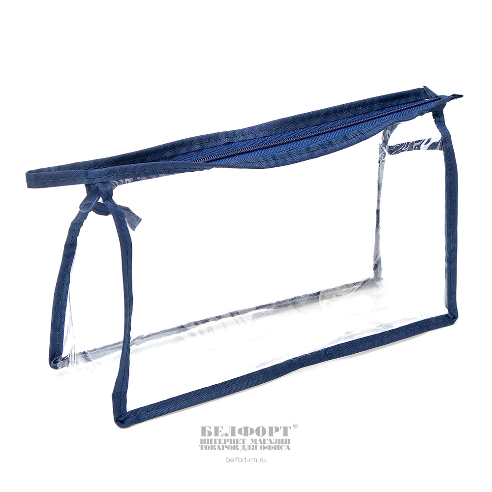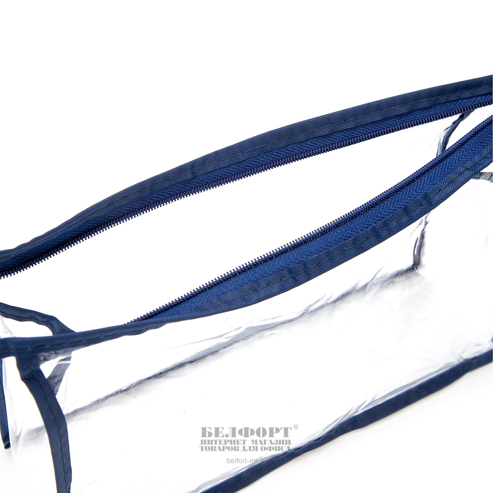 Косметичка на молнии, 20см*6см*12см, ПВХ, прозрачная+синяя