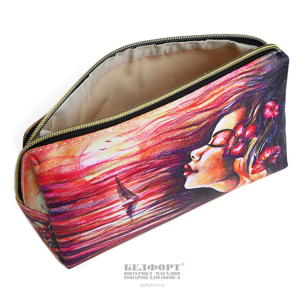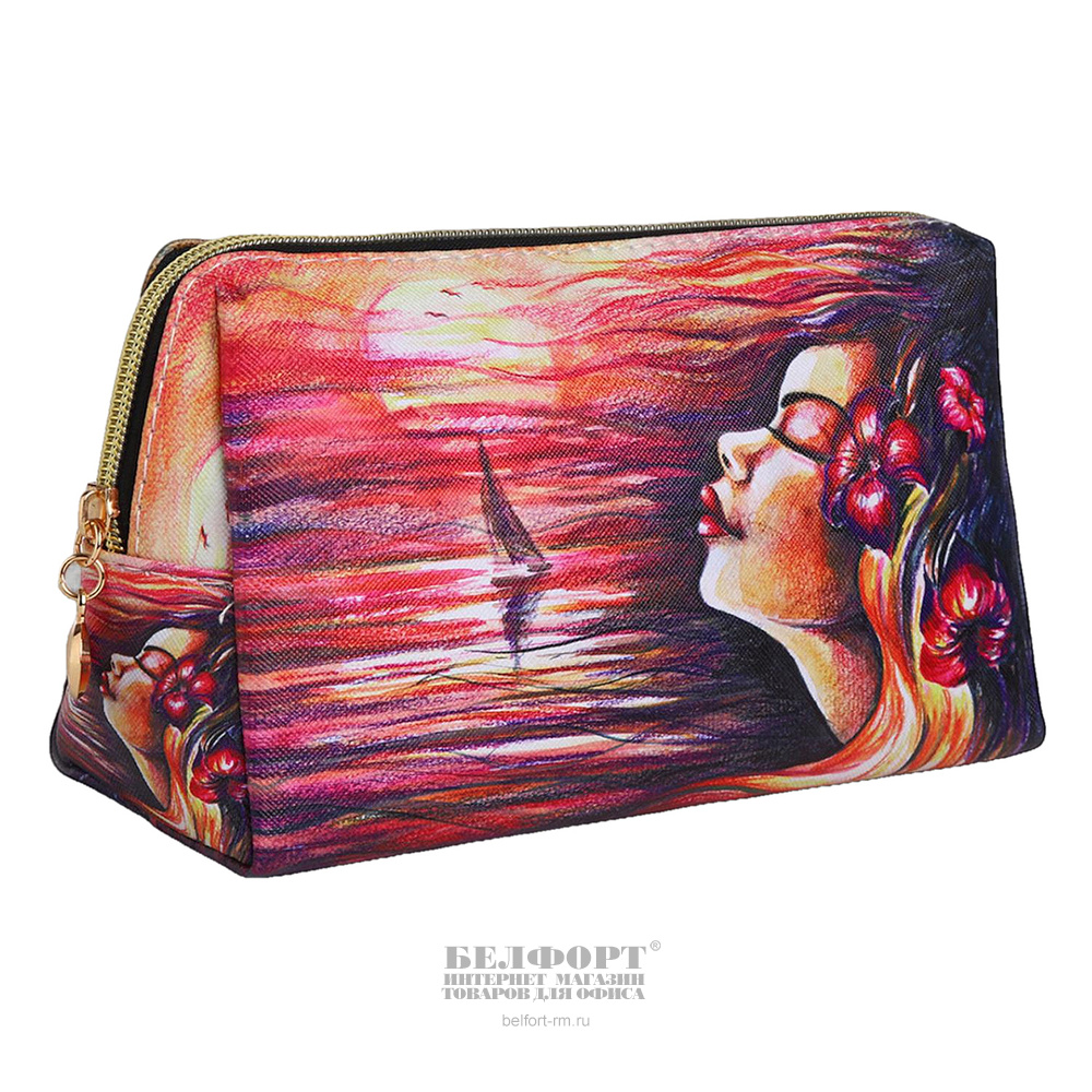 Косметичка на молнии, "Девушка", 20,6см*8,5см*12см, кожзам, цветная
