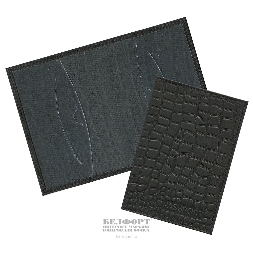 Обложка для паспорта "Passport", 13,5см*9,5см, кожа натуральная, тиснение "Аллигатор", черная