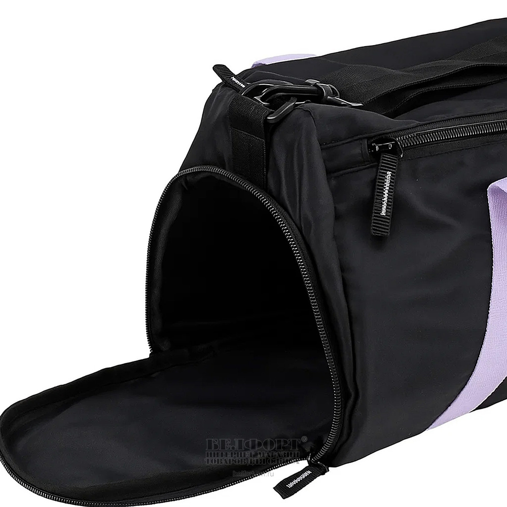 Сумка для спорта и путешествий Prof-Press, "O MyBag", 19см*42см*19см, полиэстер, черная+фиолетовая