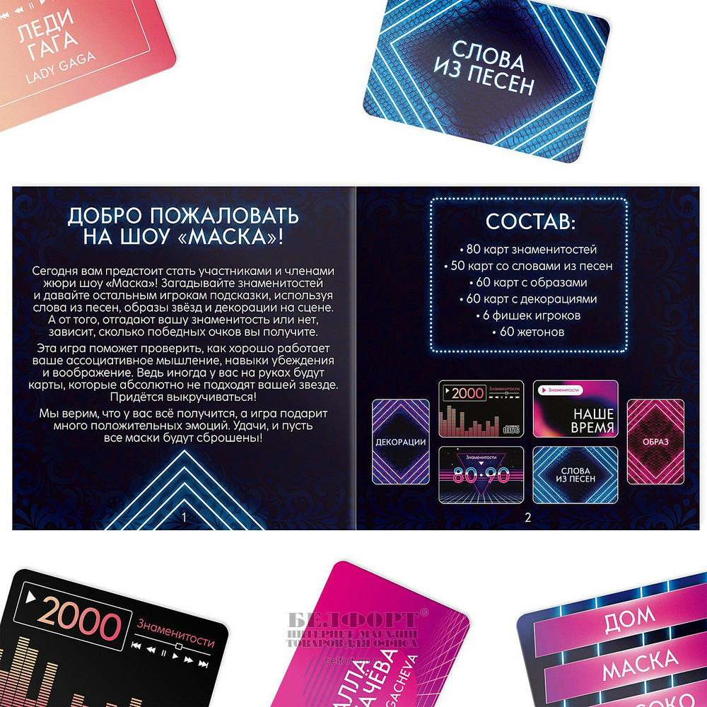 Карточная игра ЛасИграс, "Шоу Маска", 250 карточек, на ассоциации