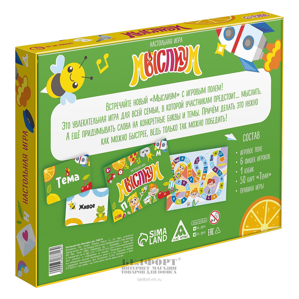 Игра-бродилка ЛасИграс, "Мыслиум", кубик, фишки, 50 карточек, размер коробки 23см*17см*2,5 см