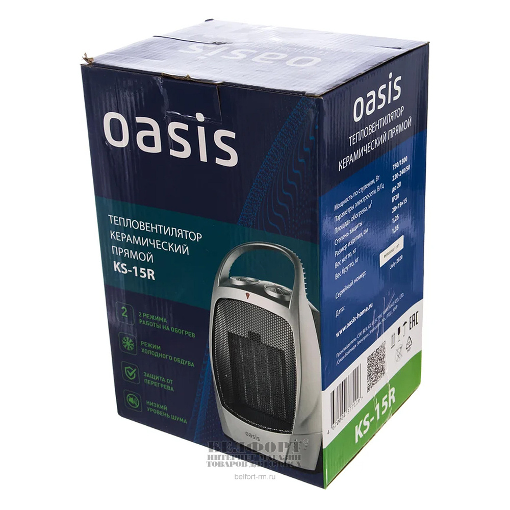 Тепловентилятор Oasis KS-15R имеет керамический нагревательный элемент.