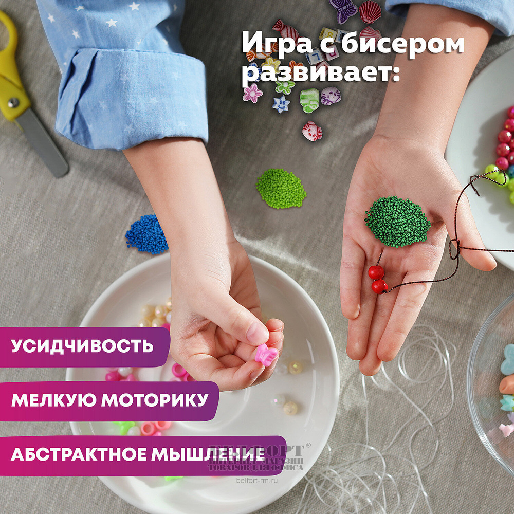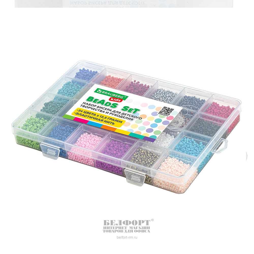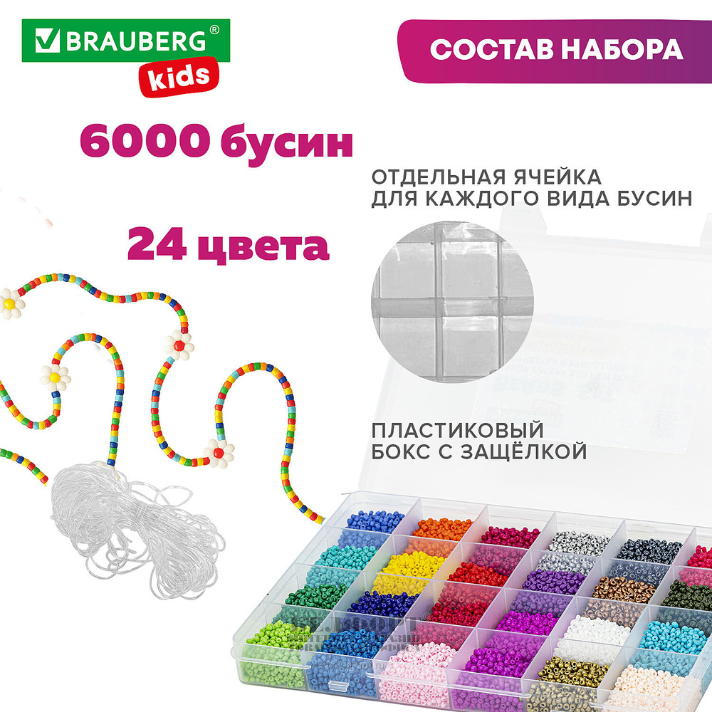 Набор для создания бижутерии и украшений из бисера Brauberg KIDS, "Beads Set", 6000 элементов, 24 вида