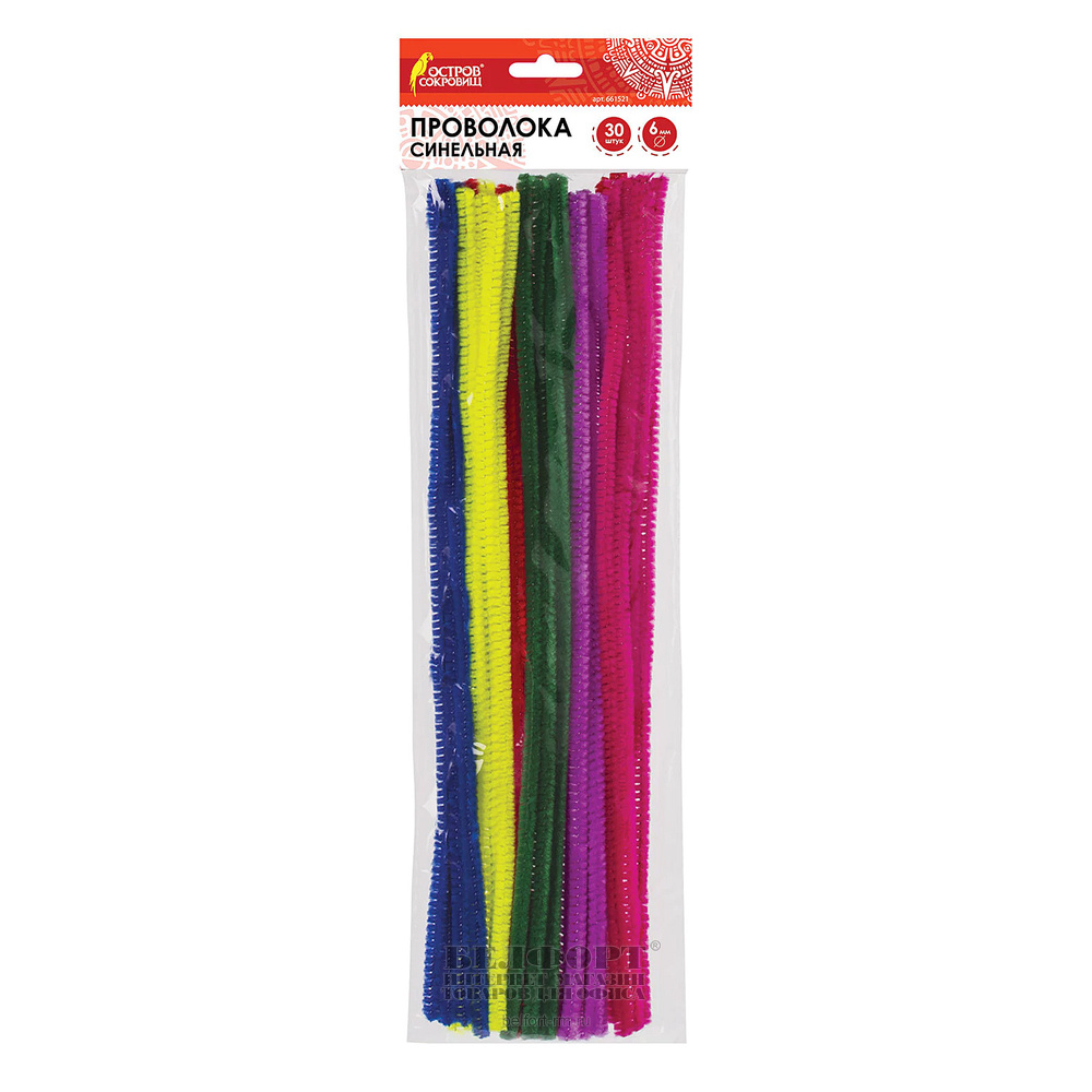 Проволока синельная Остров сокровищ, "Пушистая", 6цв, 30шт, 30мм*6мм