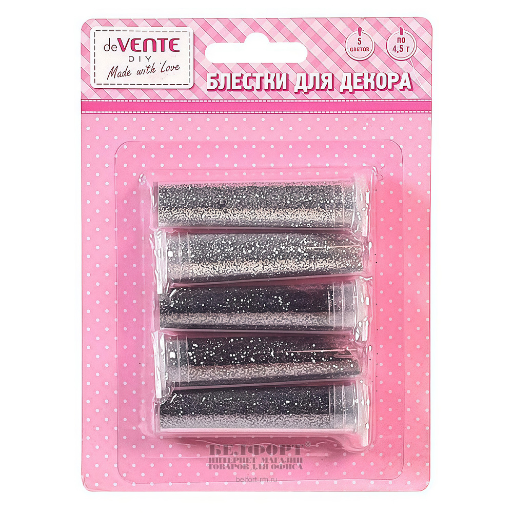 Блестки набор, deVENTE, "Оттенки серебряного", 5цв, 4,5г