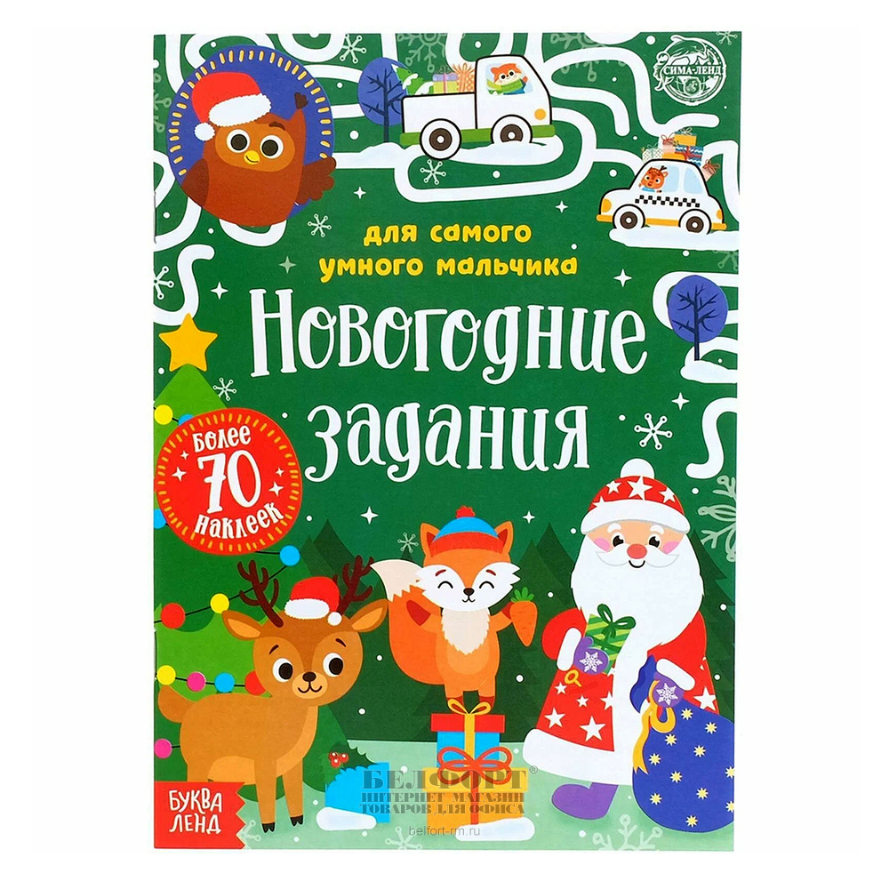 Книжка с наклейками 12стр., Буква-Ленд, "Новогодние задания для самого умного мальчика"
