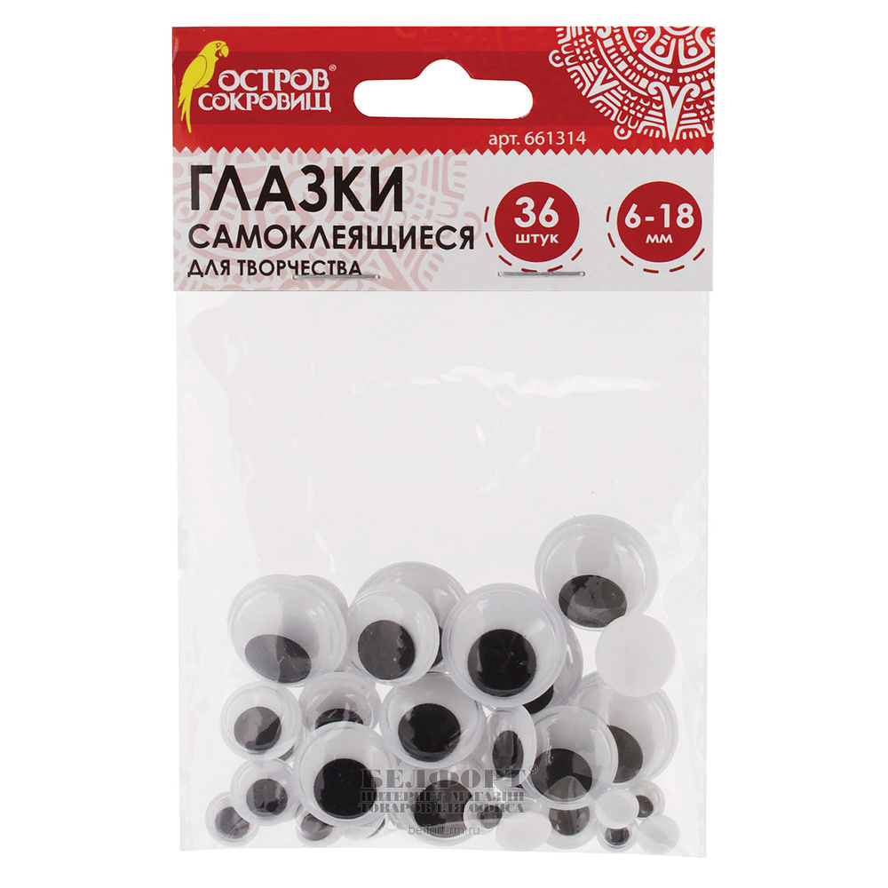 Глазки Остров сокровищ, 36шт, самоклеящиеся, вращающиеся, ассорти