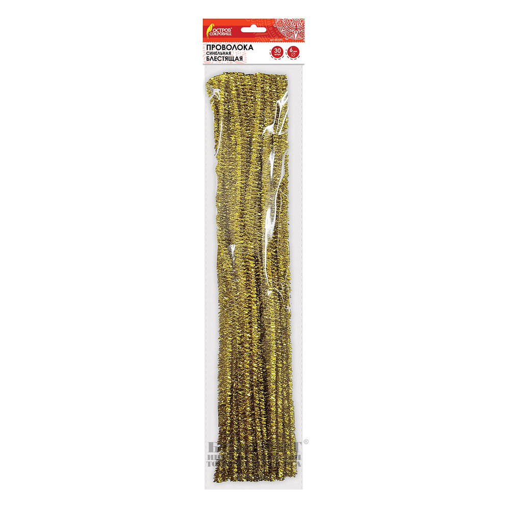 Проволока синельная Остров сокровищ, "Блестящая", 30шт, 30мм*6мм, золотистая