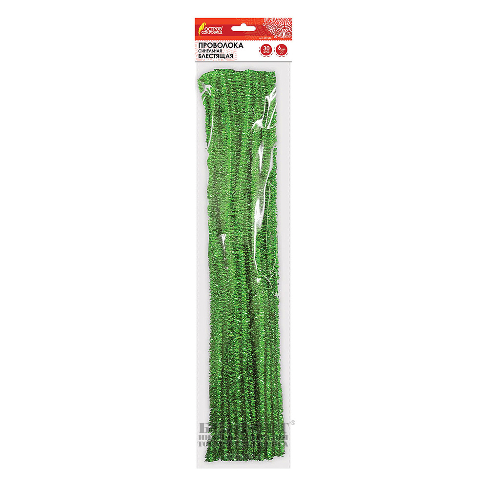 Проволока синельная Остров сокровищ, "Блестящая", 30шт, 30мм*6мм, зеленая