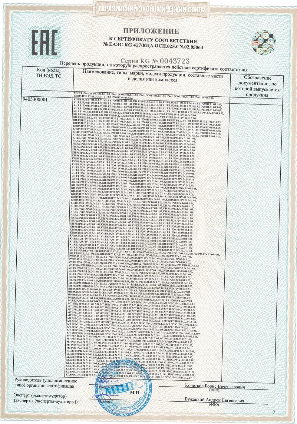 - Сертификат №ЕАЭС KG 417/КЦА.ОСП.025.CN.02.05064 до 11.11.2026 Страница: 7408,7 КБ