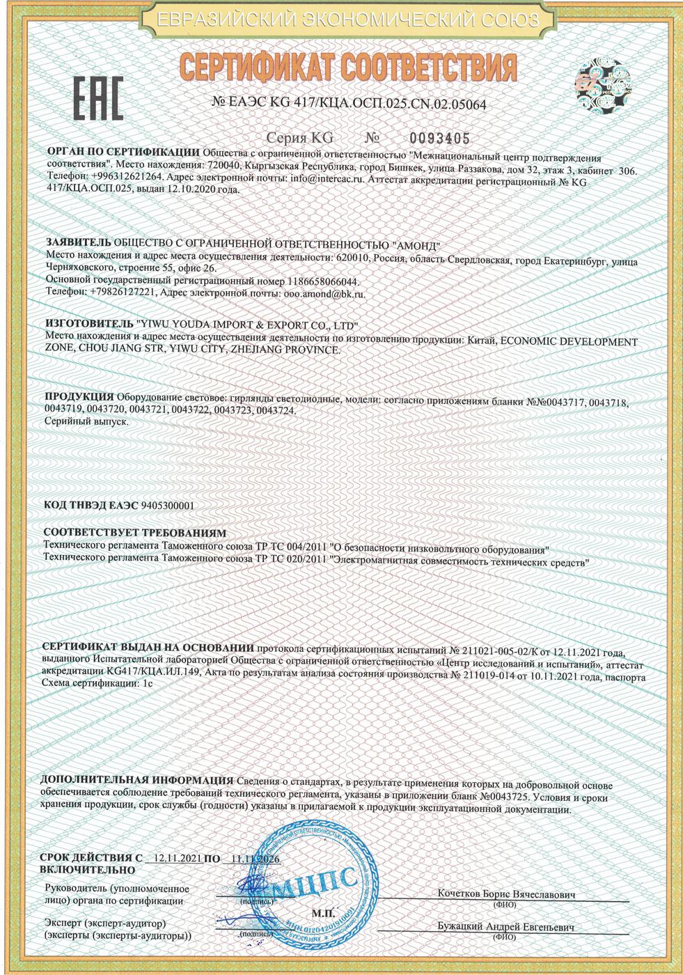 - Сертификат №ЕАЭС KG 417/КЦА.ОСП.025.CN.02.05064 до 11.11.2026 Страница: 5411 КБ