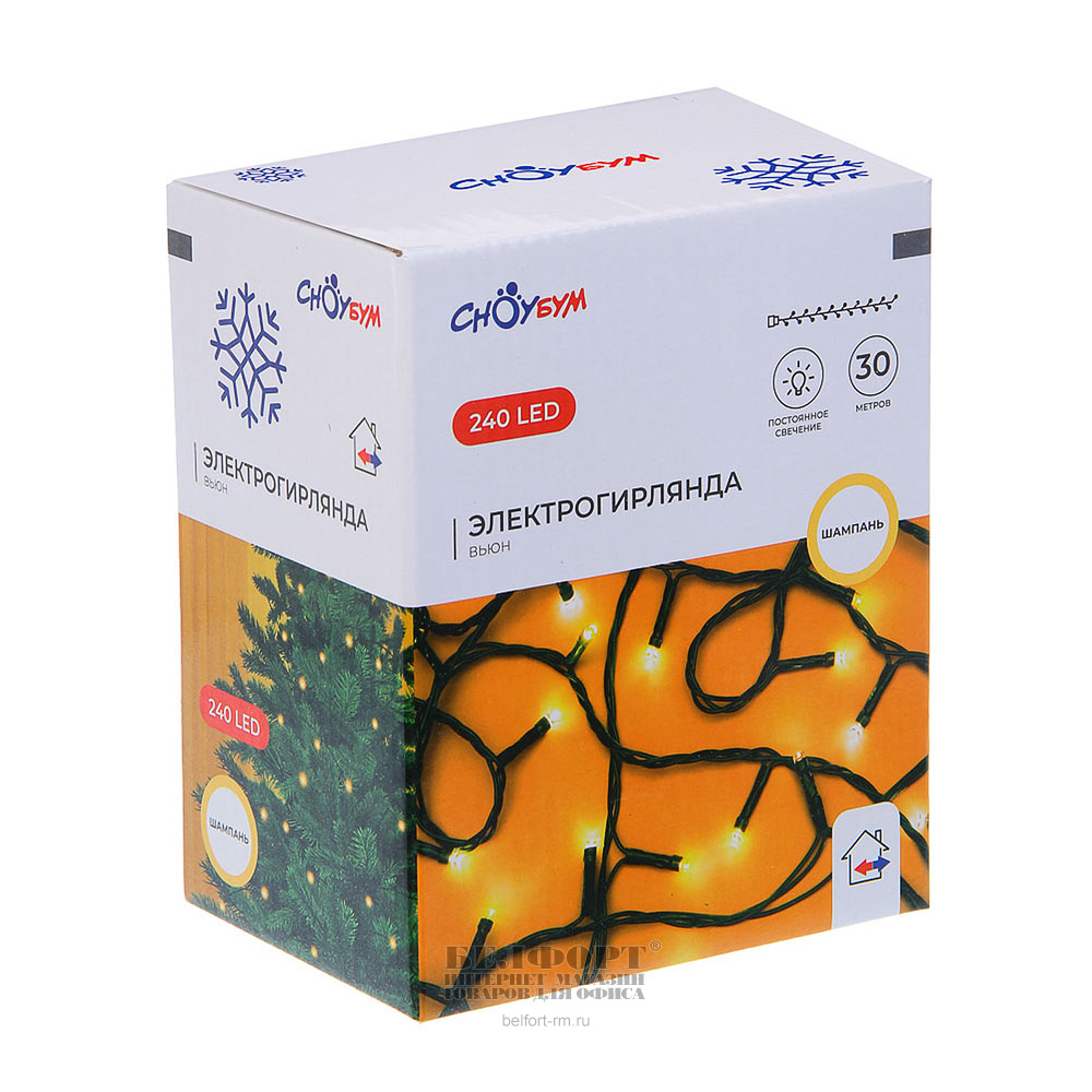 Электрогирлянда LED 30м, 240шт.лампочек, шампань, Нить, Сноу Бум, "Вьюн", для помещений, пост. свечение, 220V