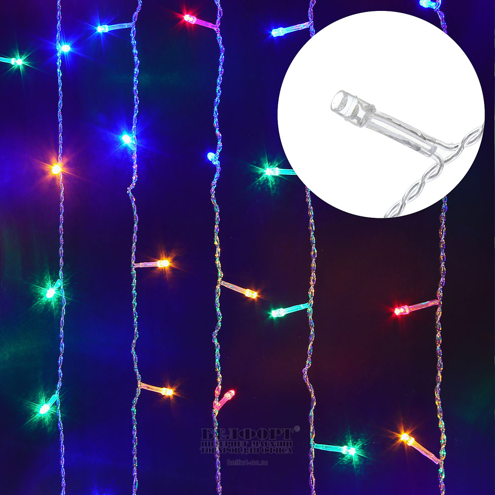 Электрогирлянда LED 2м*1,5м, 272шт.лампочек, мульти, Занавес, с контроллером, Сноу Бум, для улиц, 8 режимов, ПВХ провод