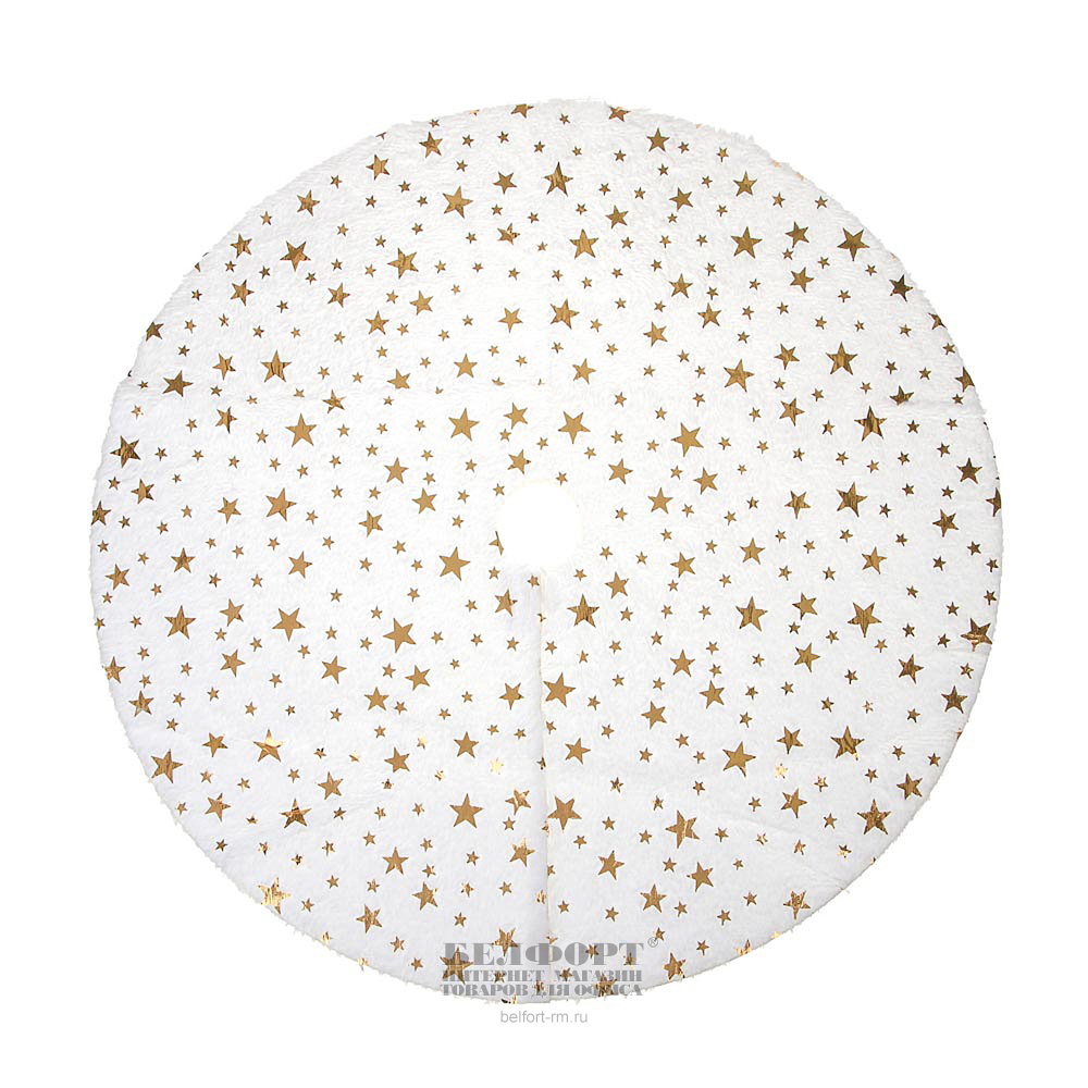 Юбка под елку декоративная, Сноу Бум, "Звезды", нижний диаметр 60см, белая+золотистая, полиэстер