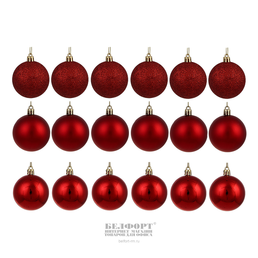 Набор шаров 6 см, 18шт, Сноу Бум, красный, пластик