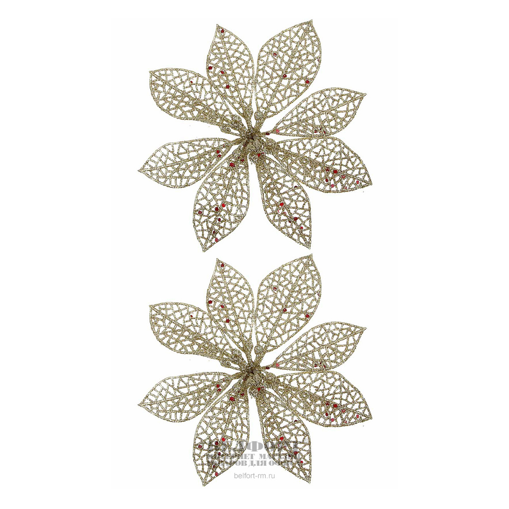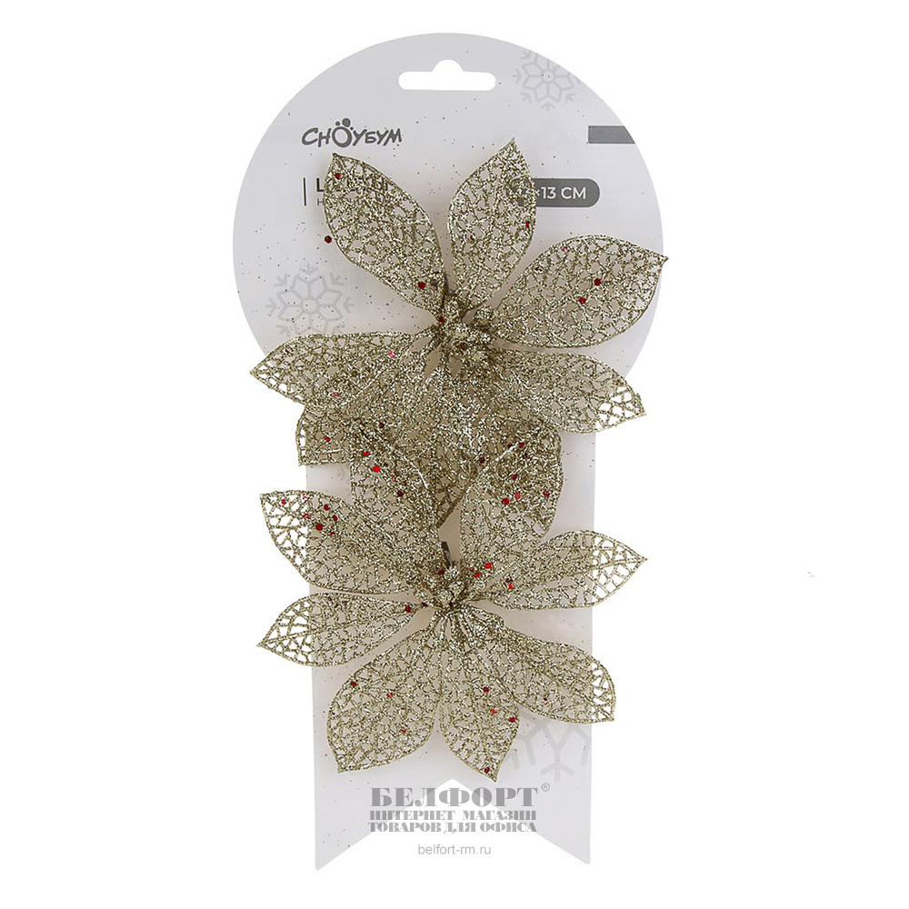 Набор украшений 2шт, Сноу Бум, "Цветы на прищепке", полиэстер, 13см*13см, красный
