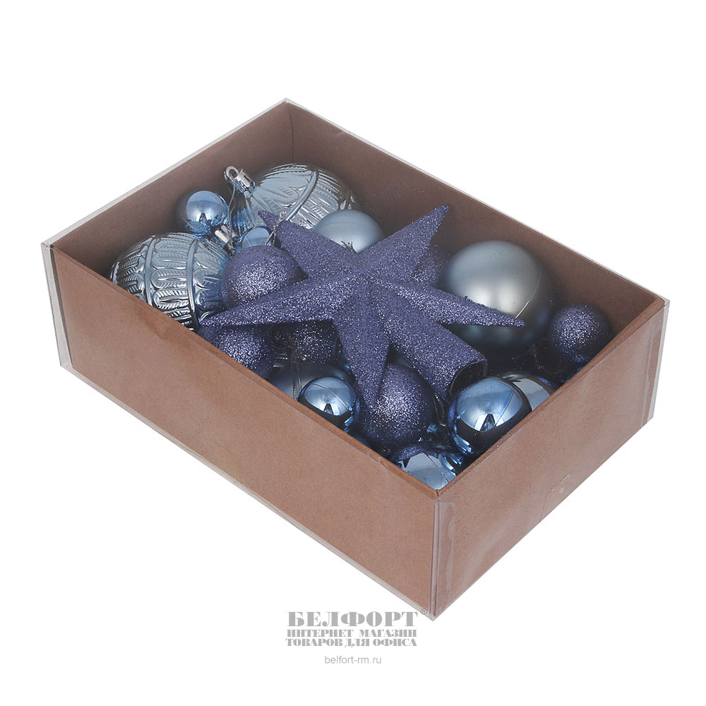 Набор шаров и украшений 30шт, Сноу Бум, синий, пластик, 3см, 4см, 6см, 8см