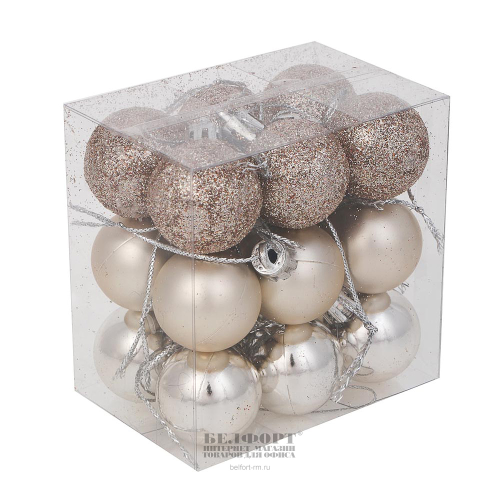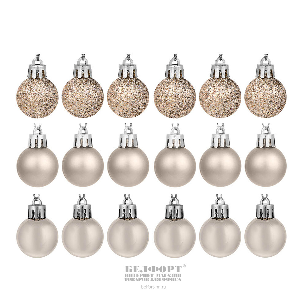 Набор шаров 3 см, 18шт, Сноу Бум, шампань, пластик